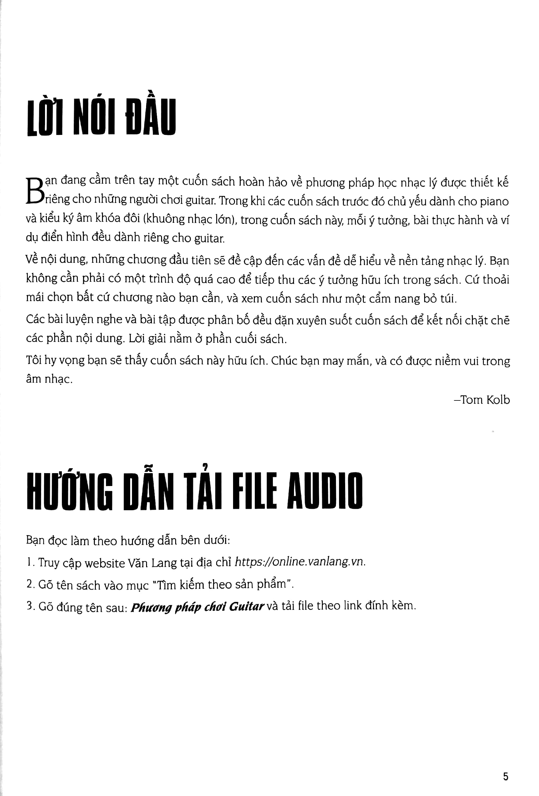 Bạn đang cầm trên tay một cuốn sách hoàn hảo về phương pháp học nhạc lý được thiết kế riêng cho những người chơi guitar. Về nội dung, những chương đầu tiên sẽ đề cập đến các vấn đề dễ hiểu về nền tảng nhạc lý. Bạn không cần phải có một trình độ quá cao để tiếp thu các ý tưởng hữu ích trong sách. Cứ thoải mái chọn bất cứ chương nào bạn cần, và xem cuốn sách như một cẩm nang bỏ túi. Các bài luyện nghe và bài tập được phân bố đều đặn xuyên suốt cuốn sách để kết nối chặt chẽ các phần nội dung. Lời giải nằm ở phần cuối của sách.