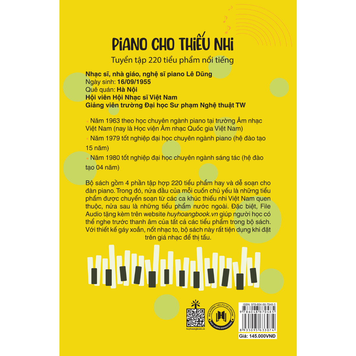 Piano Cho Thiếu Nhi - Tuyển Tập 220 Tiểu Phẩm Nổi Tiếng - Phần 2  Tái Bản: Năm 2023 Lê Dũng là một trong những lớp nghệ sĩ đầu tiên theo học đàn Piano một