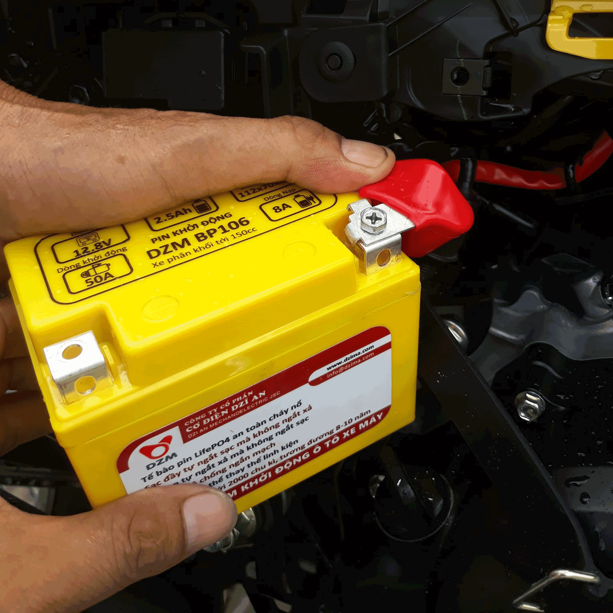 Thay Ắc quy chì. Tế bào Pin Lithium LifePO4, tuổi thọ lên đến 2000 chu kì, tương đương 8-10 năm Pin khởi động DZM có dòng xả cao gấp 3 lần so với ắc quy chì (1 viên Pin Lithium DZM 15Ah có sức mạnh tương đương với 1 ắc quy chì 45Ah), nên nhỏ gọn và nhẹ hơn nhiều Pin khởi động DZM lưu trữ điện rất lâu, hầu như không tự phóng điện Chất lượng làm việc ổn định suốt vòng đời của pin, không bị yếu dần và hư bất ngờ như ắc quy chì