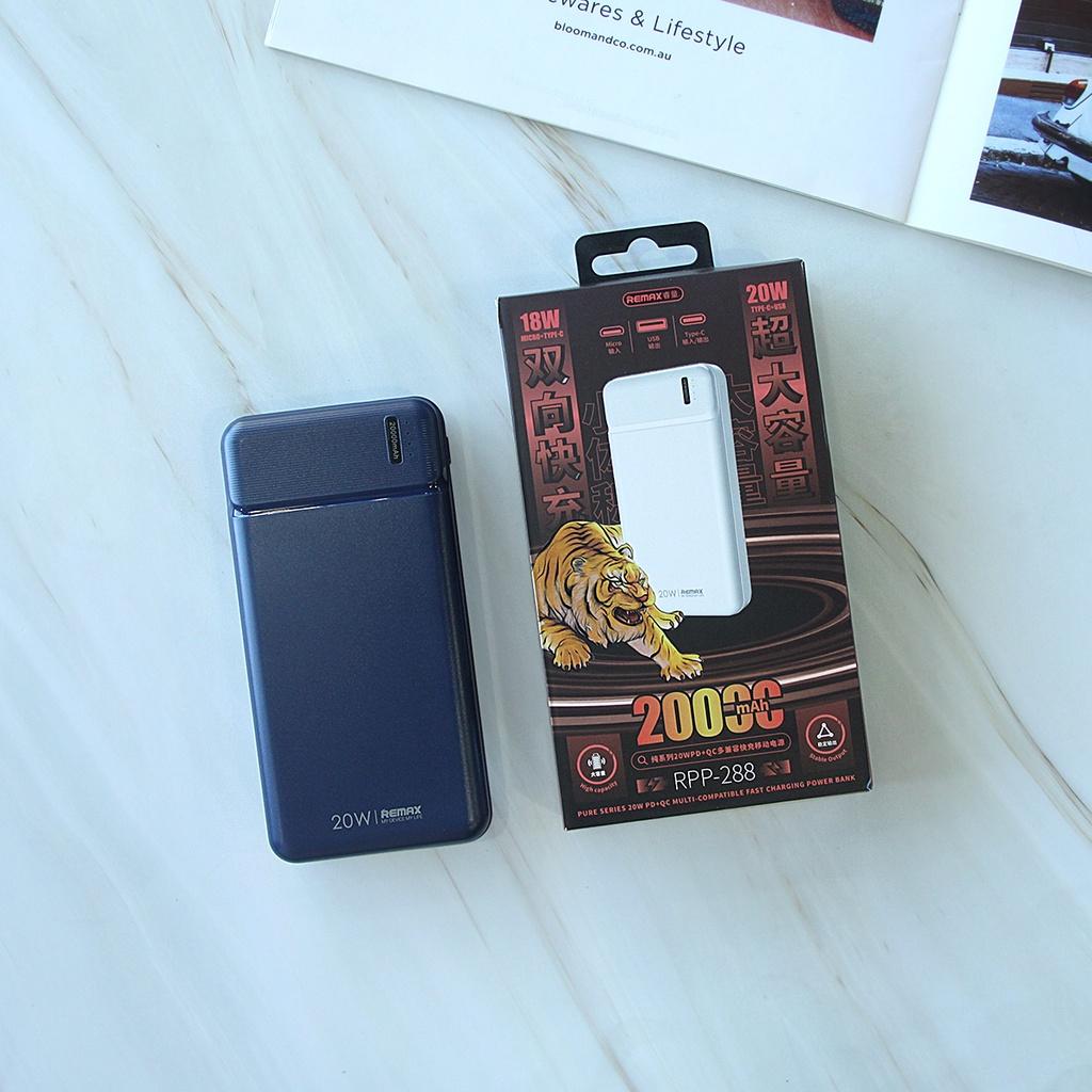 ✨Pin sạc dự phòng 20000mAh 20W PD QC Remax RPP-288 Sạc nhanh công suất 20w cho các dòng điện thoại - Hàng Chính Hãng
