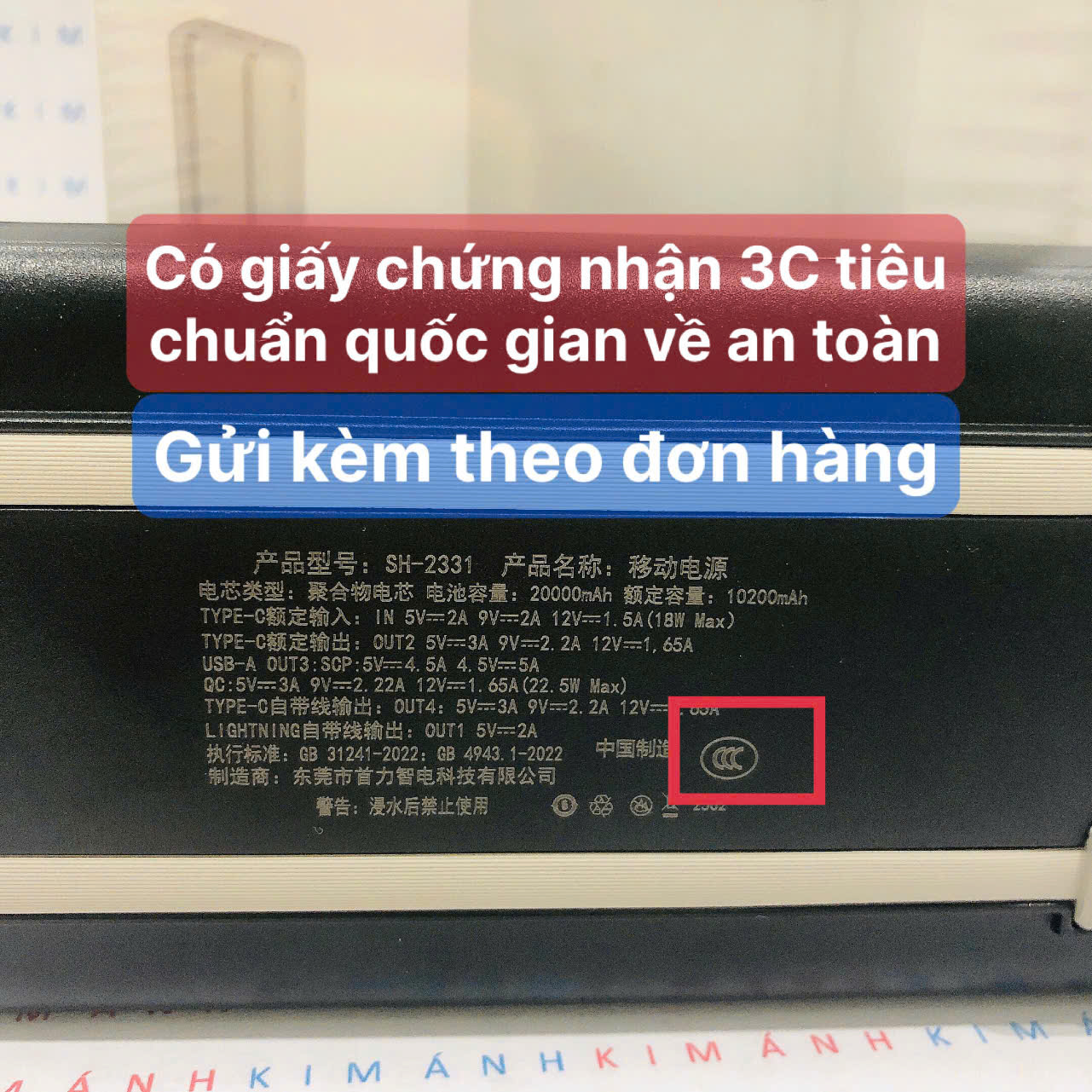 Pin sạc dự phòng SH-2331, công suất 22.5W dung lượng 20000mAh sạc nhanh hai chiều, có chứng nhận 3C tiêu chuẩn quốc gia