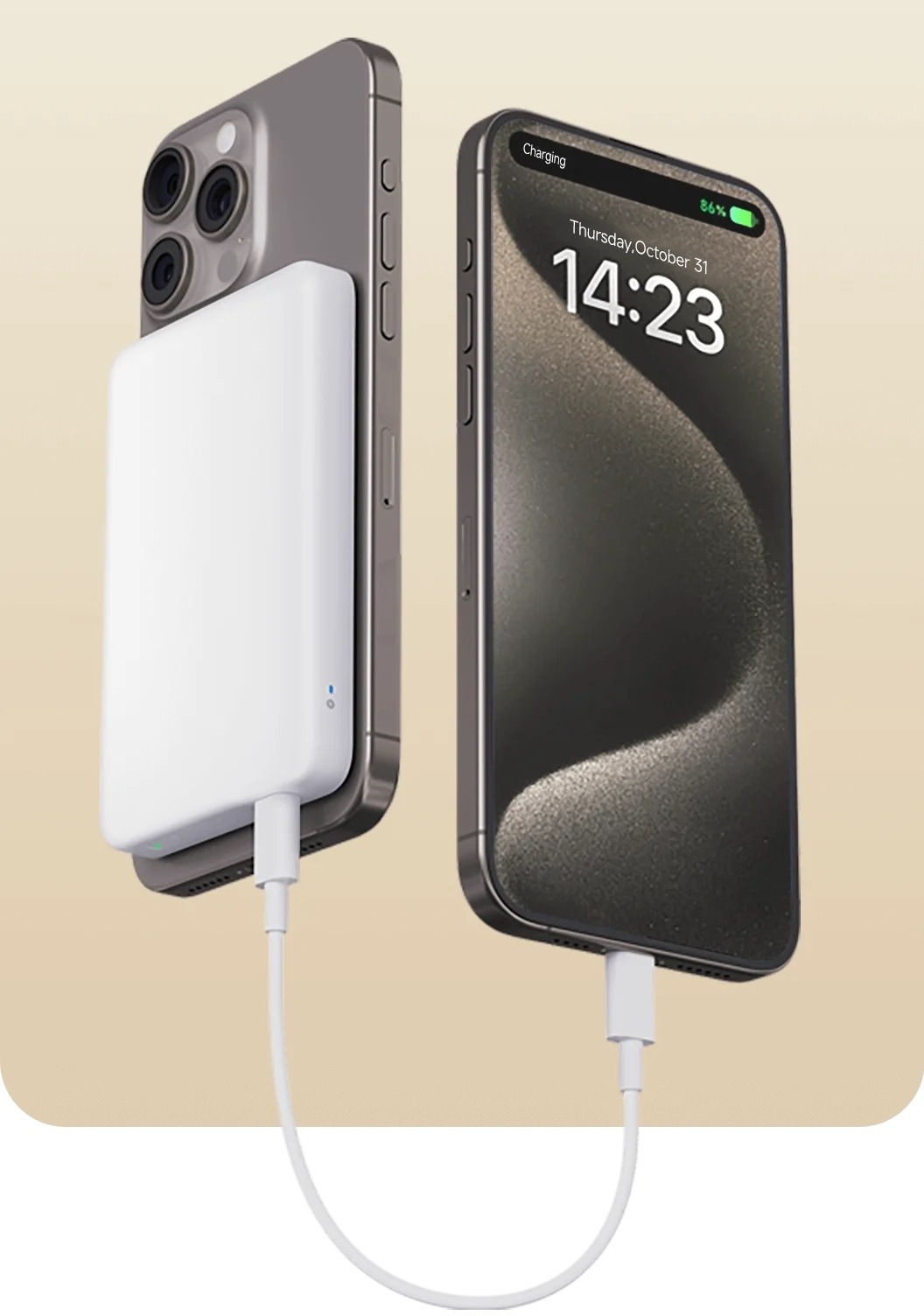 Sạc nhanh hai chiều USB-C Sạc nhanh hơn trước Có công suất đầu ra có dây tối đa là 18W và công suất đầu vào tối đa là 20W cho iPhone, cho phép sạc đầy trong khoảng 2,2 giờ