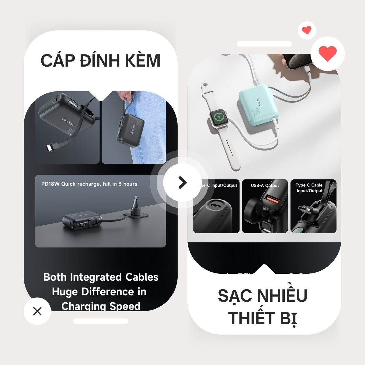Chiếc pin dự phòng này được thiết kế để đáp ứng nhu cầu sạc nhanh và linh hoạt cho các thiết bị di động. Với dung lượng lớn 10.000 mAh (hai cell 5.000 mAh) giúp