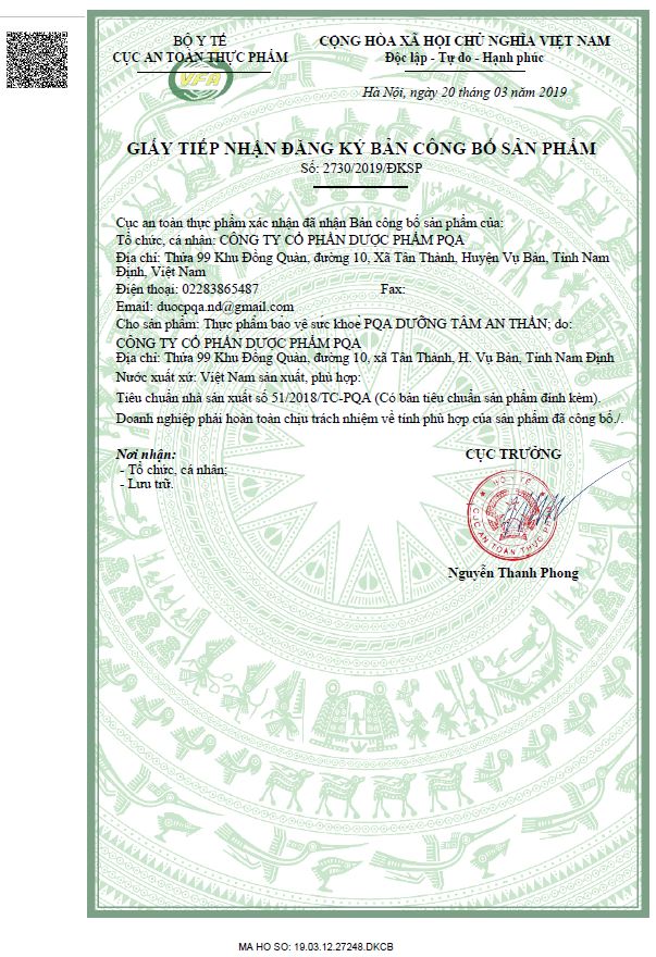 Số XNQC: 01765/2019/ATTP-XNQC