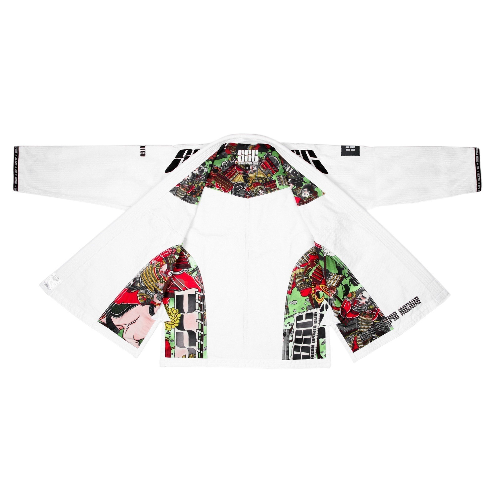 SSC Premium Gi được lấy cảm hứng từ bức tranh nghệ thuật tại khu tập Jiu Jutsu – MMA tại Saigon Sports Club với các chiến binh được vẽ theo phong cách Samurai. - Áo