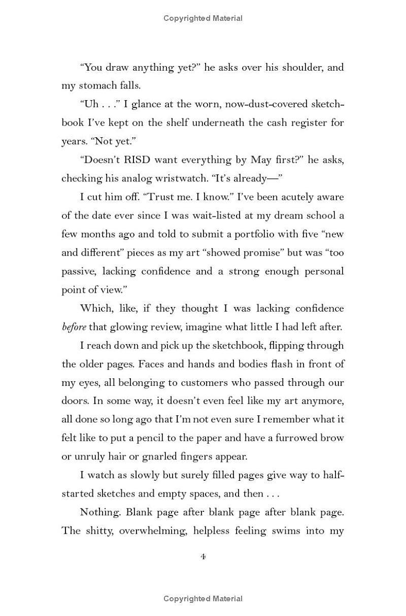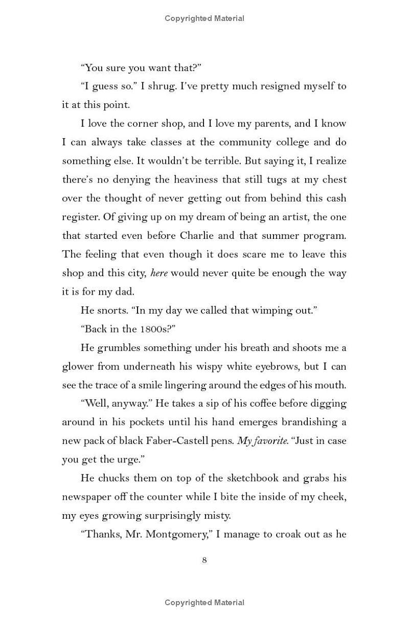 Audrey Cameron has lost her spark. But after getting dumped by her first love and waitlisted at her dream art school all in one week, she has no intention of putting her heart on the line again to get it back. So when local curmudgeon Mr. Montgomery walks into her family’s Pittsburgh convenience store saying he can help her, Audrey doesn’t know what she’s expecting…but it’s definitely not that she’ll be transported back to 1812 to become a Regency romance heroine.