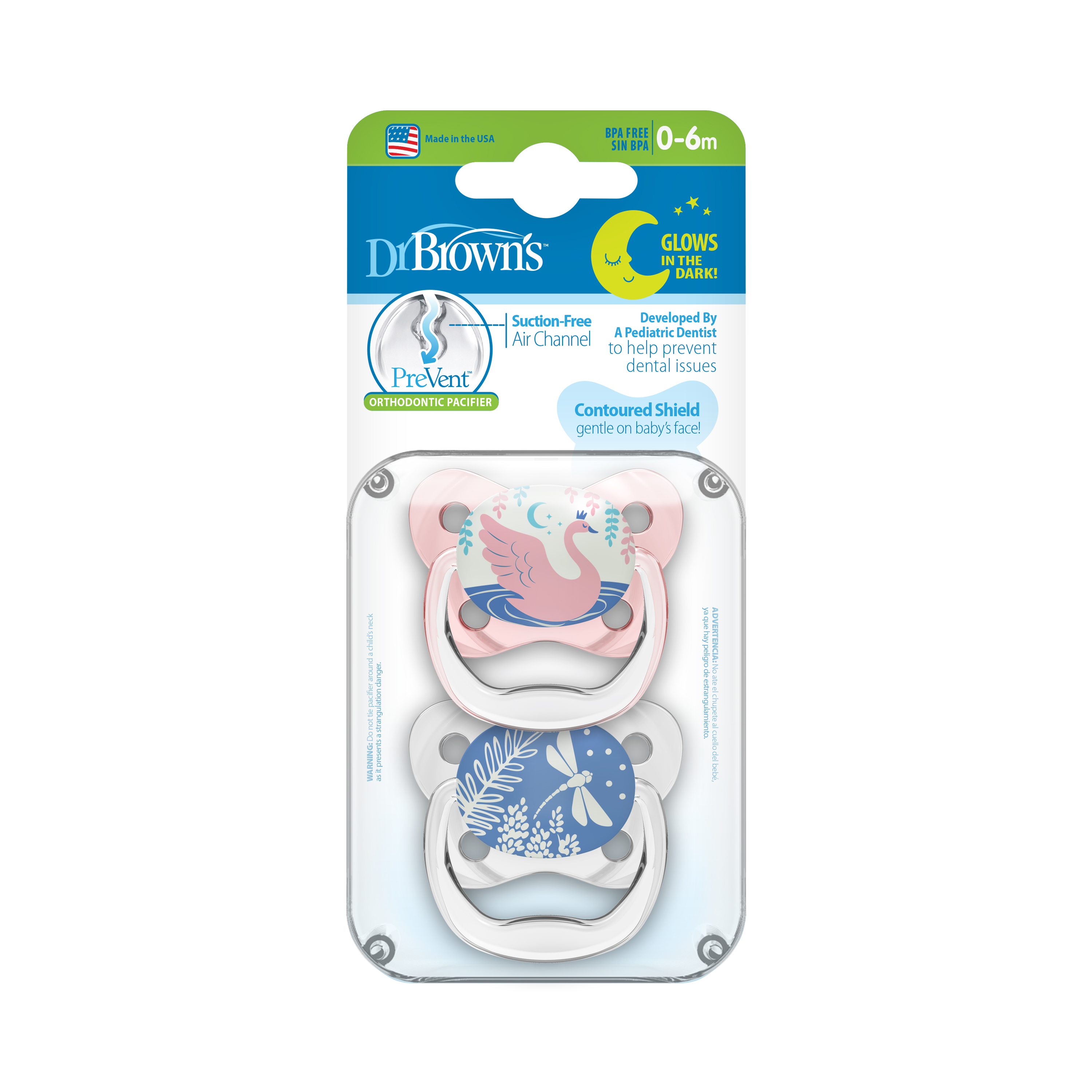 ✨[ PV12007 ] Set ty ngậm hỗ trợ chống đột tử/chỉnh nha/chống vẩu Dr.Brown's Prevent, phát sáng dạ quang ( 0-6m )