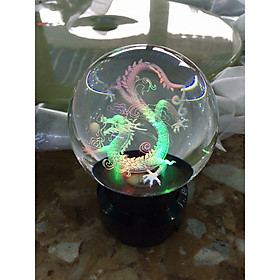 ✨Quả cầu Pha Lê phong thủy chạm âm 6D khắc hình Rồng - Đường kính 8cm
