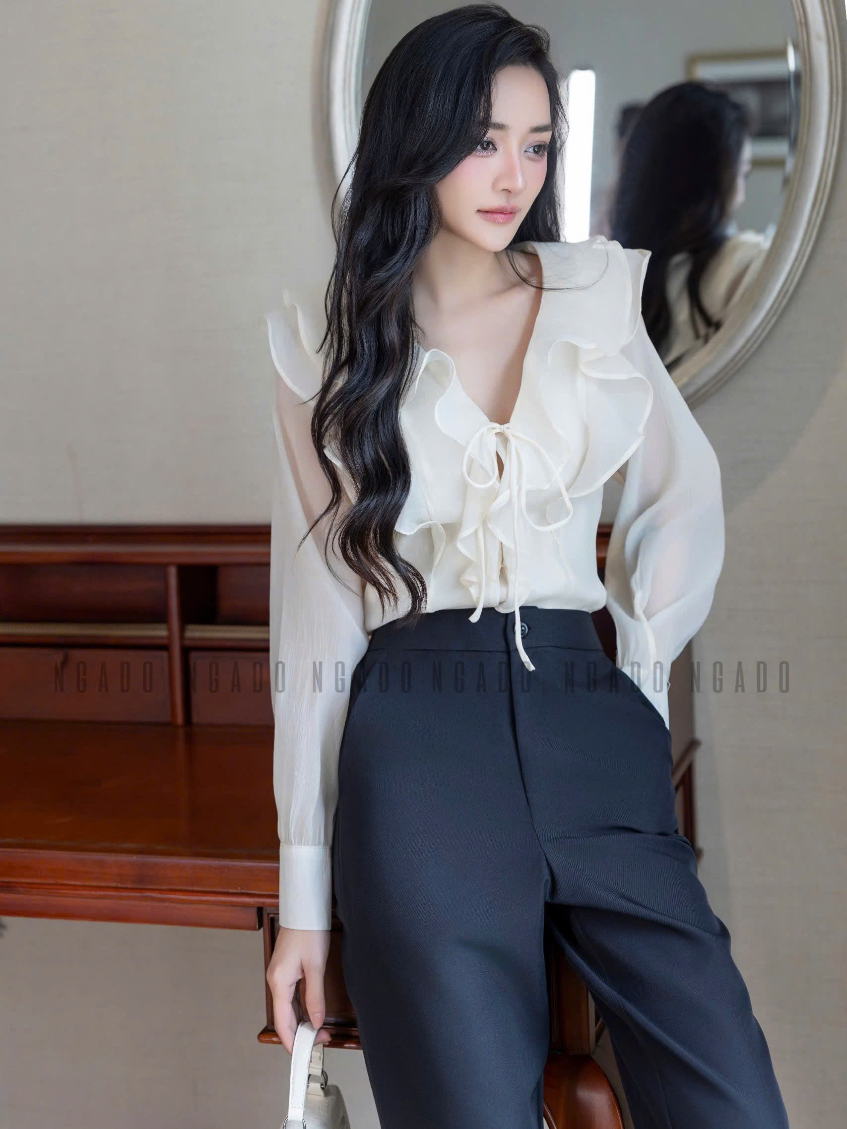 ✨Quần đen phối trắng NGADO, Quần tây nữ, Quần công sở, Quần ống đứng, ống rộng