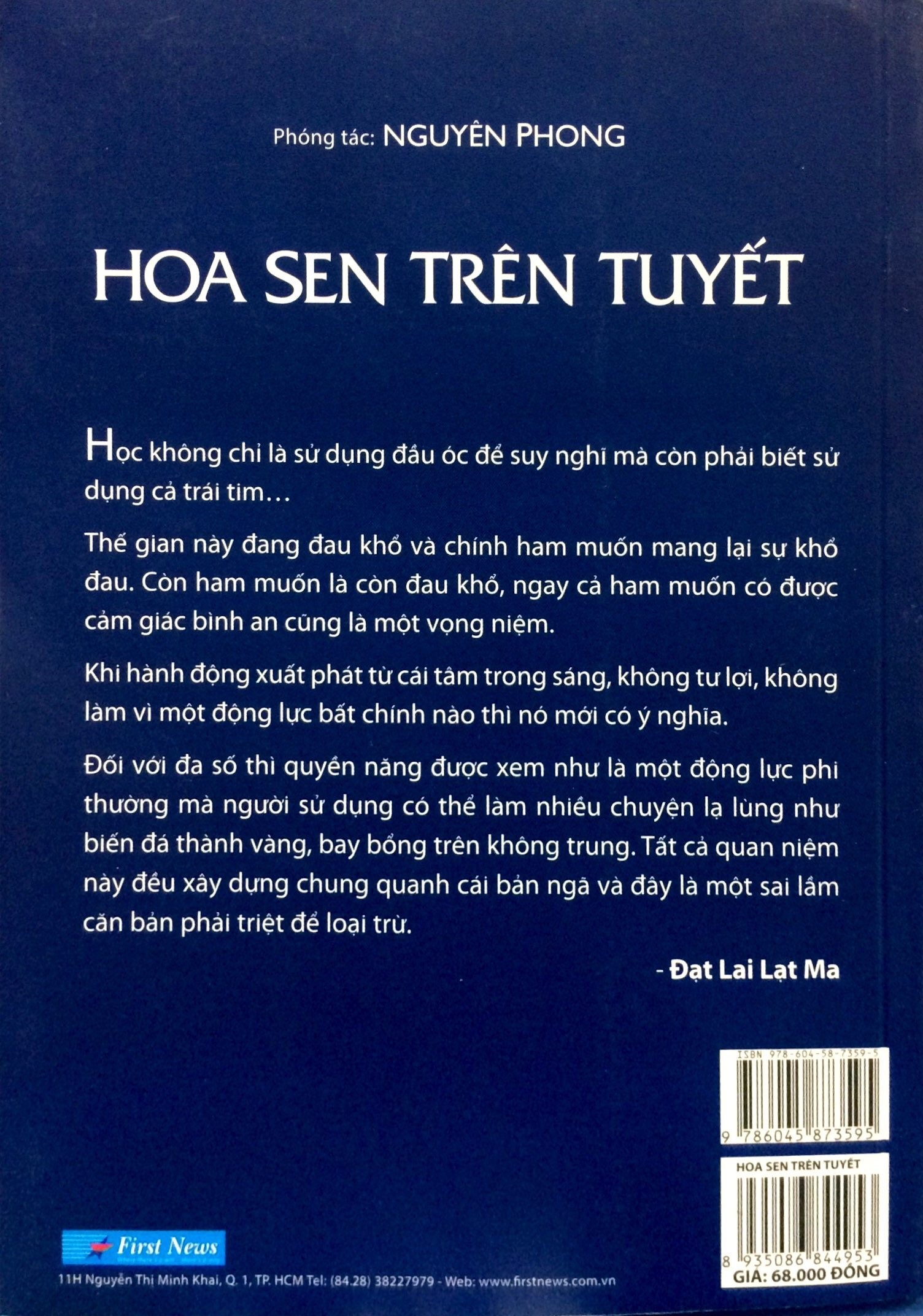 Không phải cuốn sách nói về triết học hay Phật giáo, cũng không hẳn là tự truyện được kể bởi một triệu phú, dù đó là nhân vật chính, Hoa sen trên tuyết là hành trình tìm kiếm bản thân của rất nhiều người. Chỉ để trả lời cho câu hỏi: Câu trả lời đích thực về ý nghĩa cuộc sống là gì?