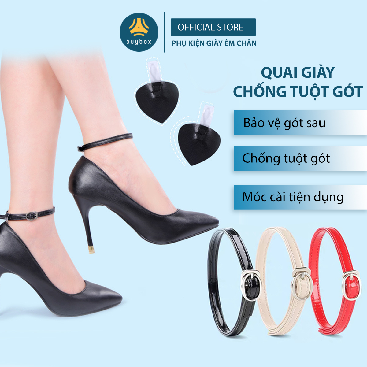 VÌ SAO PHẢI ĐÀNH BỎ XÓ ĐÔI GIÀY CAO GÓT MÀ BẠN ĐÃ YÊU TỪ CÁI NHÌN ĐẦU TIÊN VÀ QUYẾT TÂM MUA VỀ??? Giày cao gót từ 1 tấc trở lên nhìn rất quyến rũ nhưng mang vào cất bước là tuột gót Chân lỡ size mua giày rộng tí là tuột chân Gót giày nhọn mảnh khảnh vừa bước chân đã trật ngay mắt cá chân Giày búp bê đế bằng thường tuột gót   CÔNG DỤNG NỔI BẬT Quai giày vòng dưới gót chân và cổ chân giúp giữ không bị tuột gót khi đi lại; đồng thời, cổ chân cũng được cố định vào giày giúp không bị lật, trật mắt cá chân Quai giày nhuyễn và có màu sắc trung tính phù hợp với các kiểu giày đơn giản. Chất liệu da PU dày dặn và bền đẹp, hài hòa với hầu hết giày chất liệu da. Móc khoen inox dễ tháo dễ cài. NGỮ CẢNH SỬ DỤNG Giày bị tuột gót Giày cao gót khó đi lại Giày rộng size   THÔNG TIN SẢN PHẨM