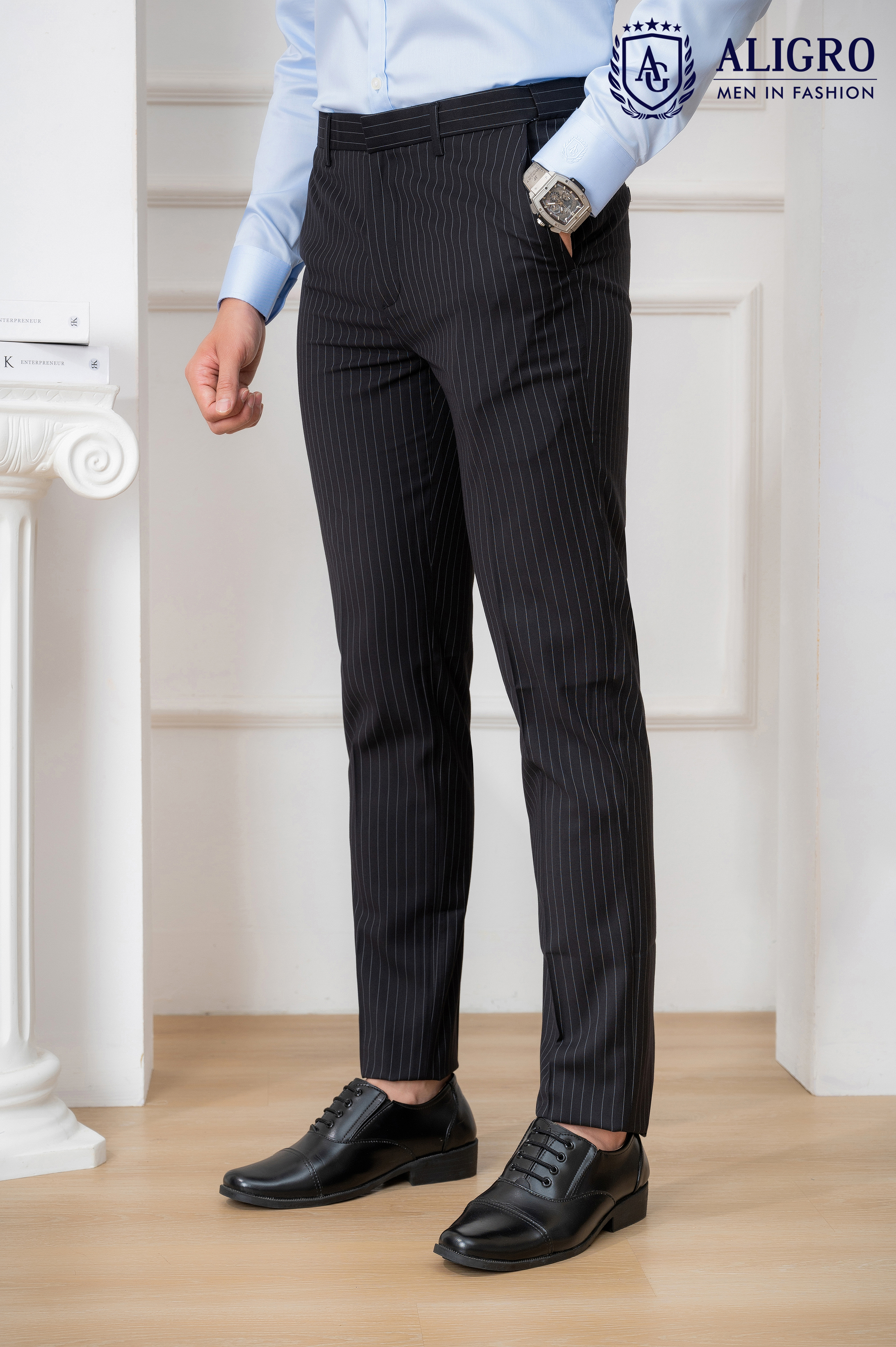 ✨Quần Âu Nam Aligro Màu Xanh Kẻ Sọc Vàng Nhỏ Chất Liệu Cao Cấp, Chuẩn Form Slimfit, Tôn Dáng ALGO1047