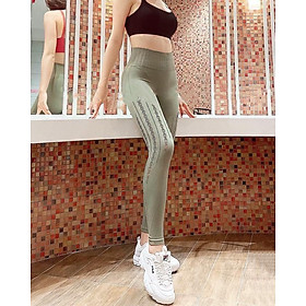 - Chất liệu: Quần tập gym có chất liệu: 90% polyester, 10% spandex. - Kiểu dáng: Quần legging dài cạp cao gen bụng nâng mông tôn dáng - Quần tập thiết kế cạp cao, bó