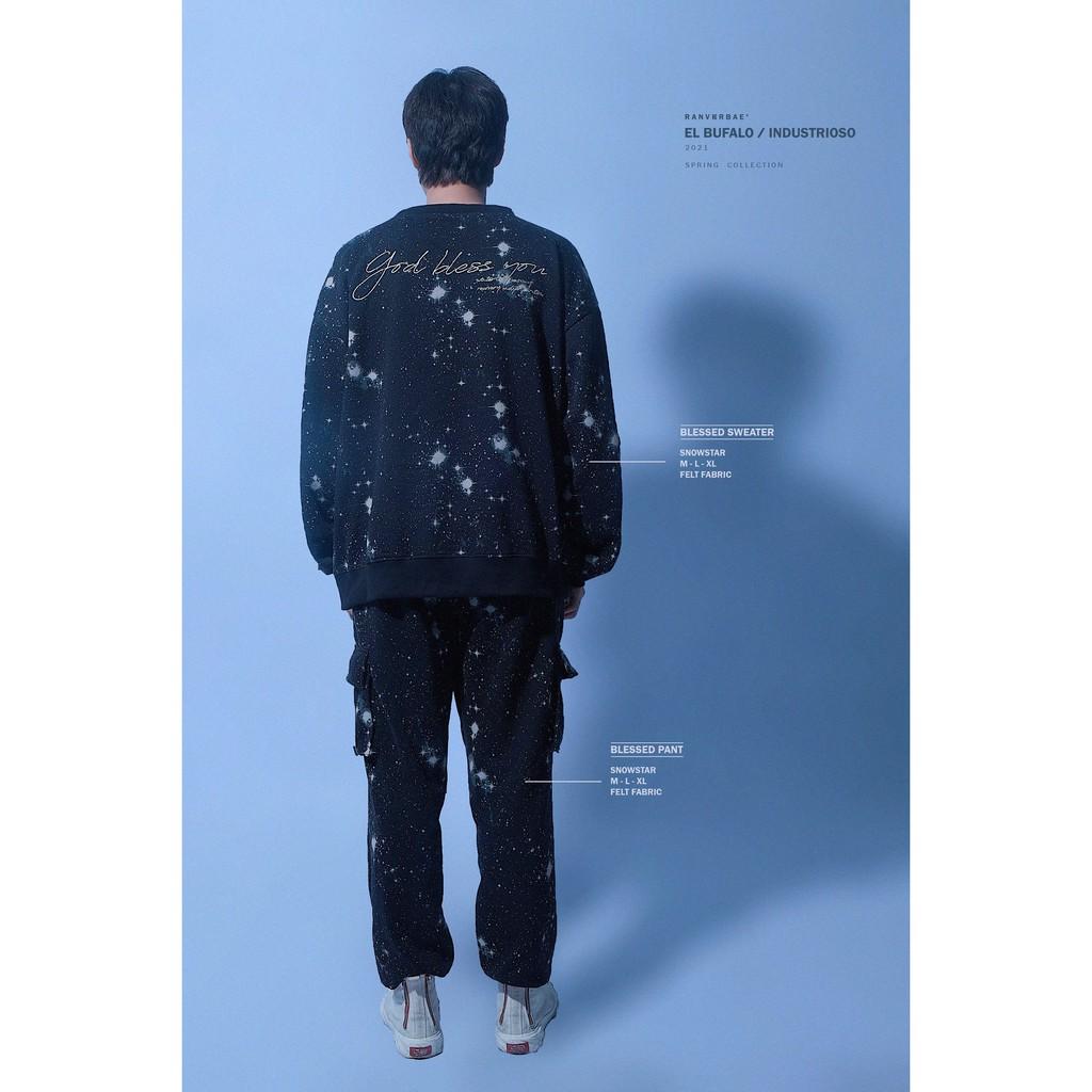 BLESSED Sweater Pant Màu: Đen Sao Size:M - L - XL Chất Liệu: 70% Cotton, 30% Polyester Hướng dẫn giặt ủi: + Phải lộn quần áo từ ngoài vào trong trước khi giặt để bảo