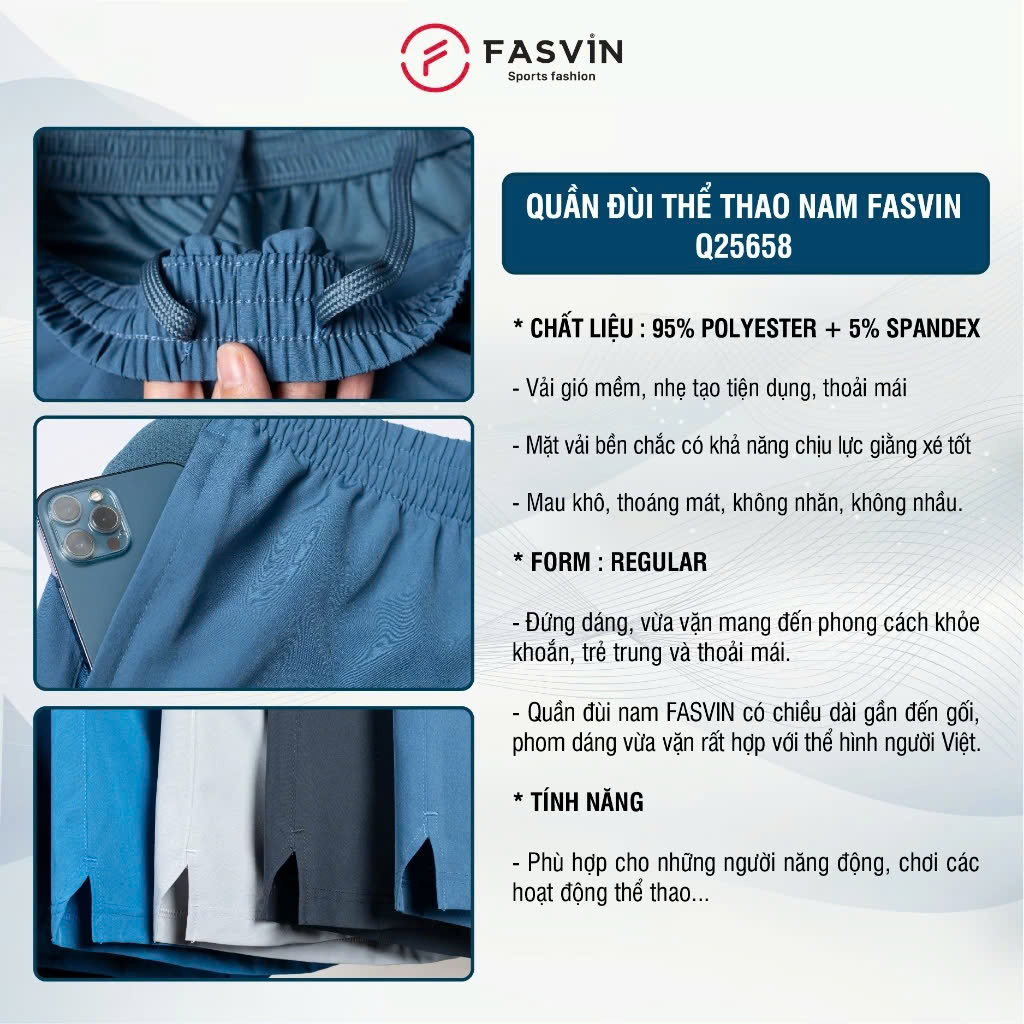 => Các shop có thương hiệu đều luôn giữ gìn uy tín của mình. Đến với FASVIN bạn cũng sẽ nhận được điều đó. _ Trước khi mua bạn nên tham khảo đánh giá và chat với shop để nhận được tư vấn từ người bán. => Quần Đùi Nam FASVIN Vải Gió Đẹp Hàng Nhà Máy Chất Lượng Cao Q25658.HN sản xuất trong nhà máy của FASVIN tại Việt Nam. Với quy trình thu hóa nghiệm ngặt, các sản phẩm đều được làm ra một cách cẩn thận và chắc chắn. * TÍNH NĂNG NỔI BẬT: