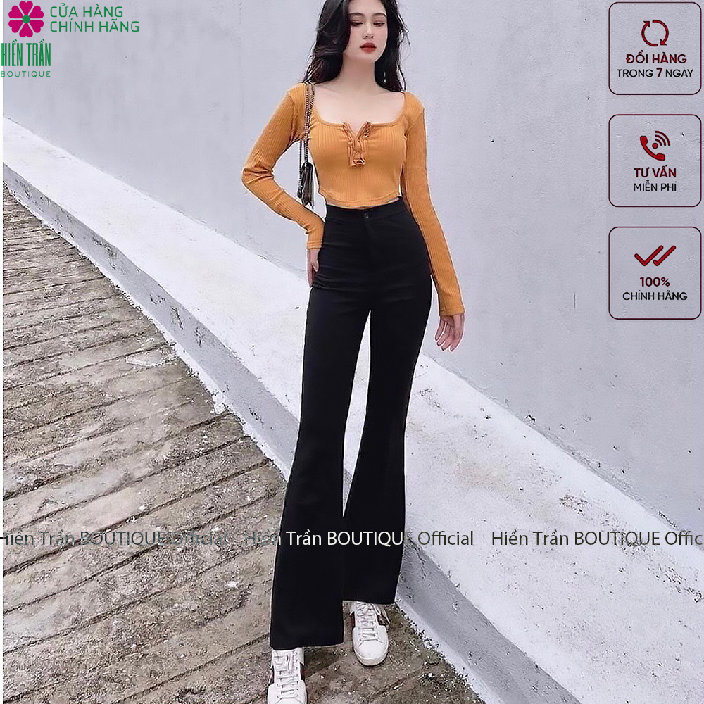 - Quần ống loe nữ cao cấp, co giãn tốt, đàn hồi cao, không bai nhão.