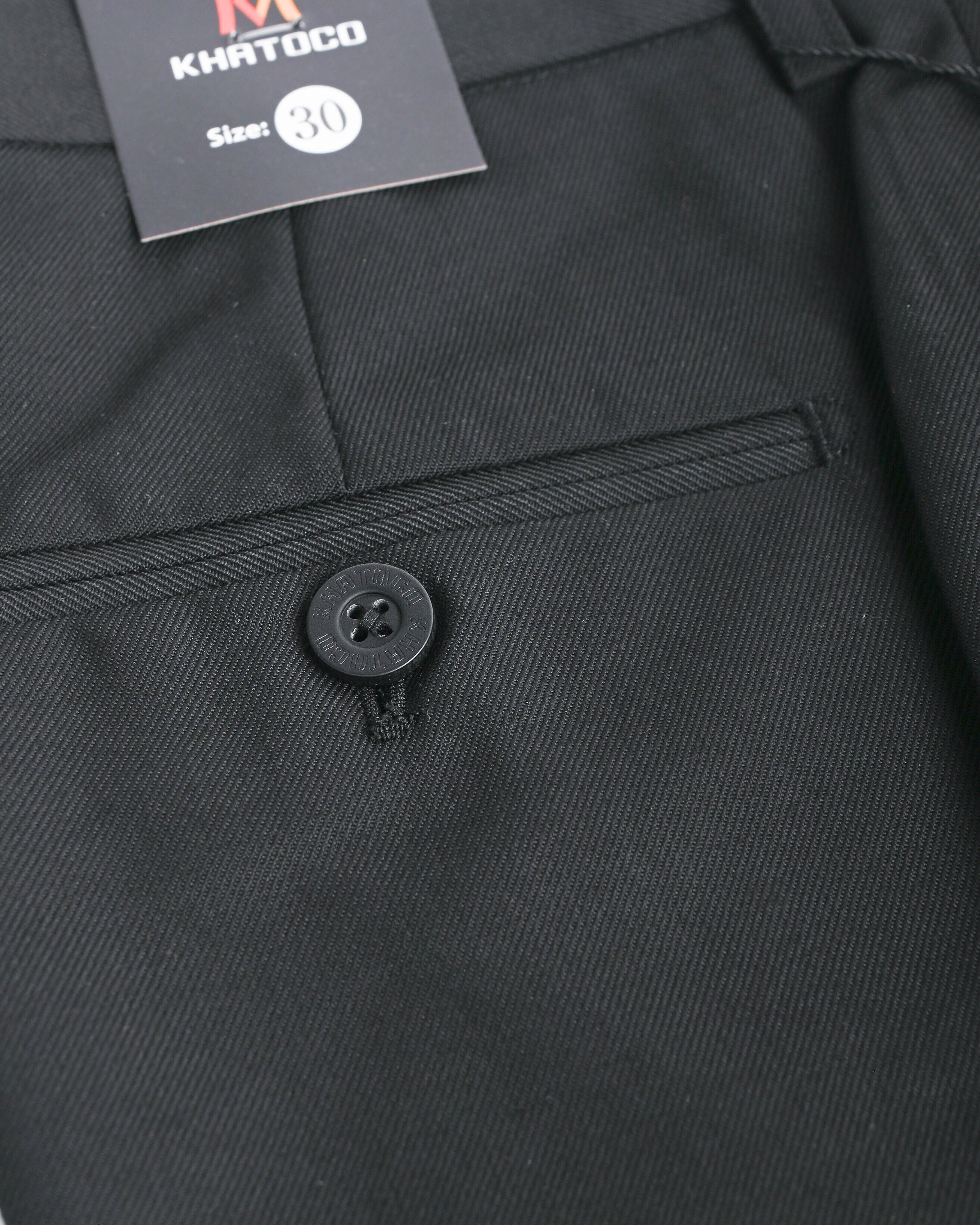 Mô tả sản phẩm – Quần tây nam Khatoco không ly màu đen Chất liệu cao cấp - Thành phần: 70% Terylon, 30% Rayon. - Vải mềm mịn, thoáng khí, bền màu và hạn chế