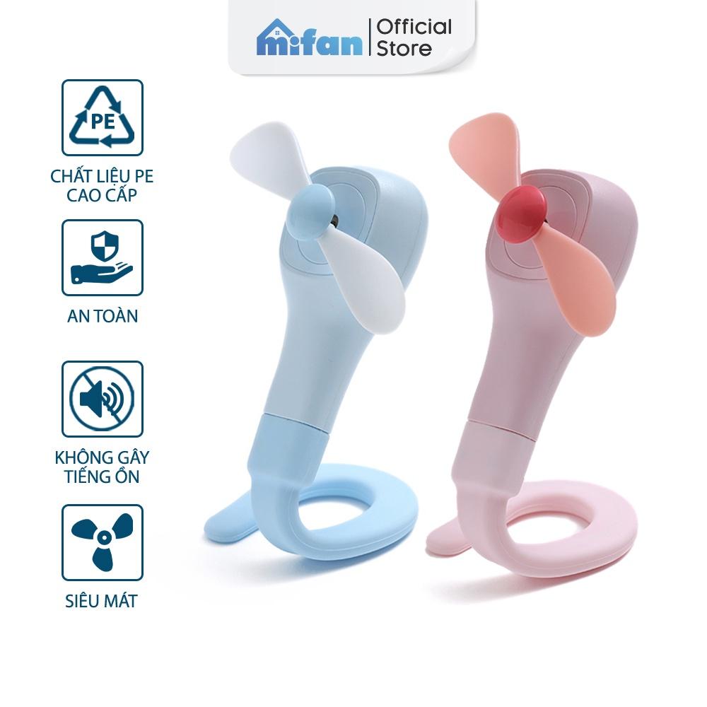------------ TÍNH NĂNG CƠ BẢN ------------- Quạt cầm tay mini đa năng Mifan với thiết kế mới độc đáo. AN TOÀN: Cánh quạt được làm bằng chất liệu nhựa PE mềm, không làm đau người sử dụng khi vô tình chạm phải cánh quạt quay. Cơ chế tự động ngắt khi có va chạm giúp bảo vệ người sử dụng cũng như bảo vệ motor không bị cháy. KHÔNG TIẾNG ỒN: Cánh quạt bằng nhựa mềm, không có lồng quạt kết hợp với motor chất lượng cao đem đến cho quạt khả năng hoạt động cực kỳ êm ái, bạn sẽ không có cảm giác khó chịu vì tiếng ồn của quạt như các loại quạt bình thường khác. Thích hợp sử dụng trong các môi trường đòi hỏi sự yên tĩnh như văn phòng, thư viện, lớp học. THIẾT KẾ ĐẸP: Với thiết kế gọn gàng, thân vỏ là nhựa phủ cao silicone mềm được phối màu Pastel thời trang, chiếc quạt có hình thức rất dễ thương và như một vật trang điểm cho chiếc balo túi xách của bạn. ------------ THÔNG SỐ KỸ THUẬT ------------- Vật liệu: nhựa ABS, PE, Silicone Kích thước: 2527264 mm Trọng lượng: 81.5 gr Dung tích pin: 500 mAh Thời gian sạc: 1.5h Công suất tiêu thụ điện: 1.05W Cổng sạc: USB Sạc đầu vào: DC5V-0.5A Đóng gói: Quạt + dây sạc USB   ------------ HƯỚNG DẪN SỬ DỤNG ------------- Lần đầu tiên sử dụng, sạc đầy thiết bị trong khoảng 2 tiếng. Sử dụng ổ cắm sạc 5V (sạc điện thoại iphone, android, các loại ổ điện có cổng sạc usb…) Bật công tắc ở phía sau quạt. Có 2 tốc độ gió Quạt có tính năng tự động dừng khi xảy ra va chạm. Cần phải bật lại quạt nếu quạt bị dừng.     ------------ QUY ĐỊNH BẢO HÀNH ------------- ️ Khi nhận hàng các bạn kiểm tra kĩ cùng với bưu tá để chắc chắn hàng không bị trục trặc hoặc có thể quay clip khi mở hàng. ️ Bảo Hành 1 tháng 1 đổi 1 với các lỗi do nhà sản xuất. Không bảo hành các lỗi do người sử dụng.