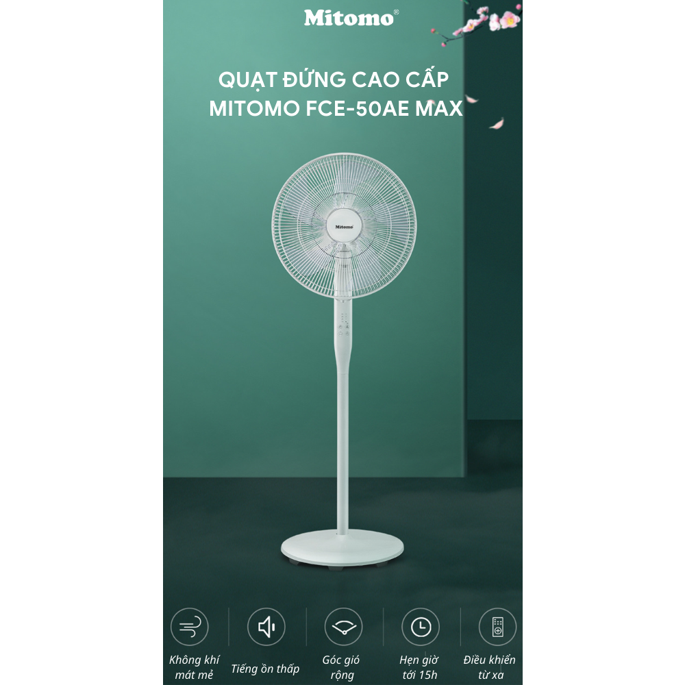 ✨Quạt Cây Đứng Cao Cấp Mitomo FCE - 50AE MAX, có điều khiển từ xa, hẹn giờ, hoạt động siêu êm hàng chính hãng