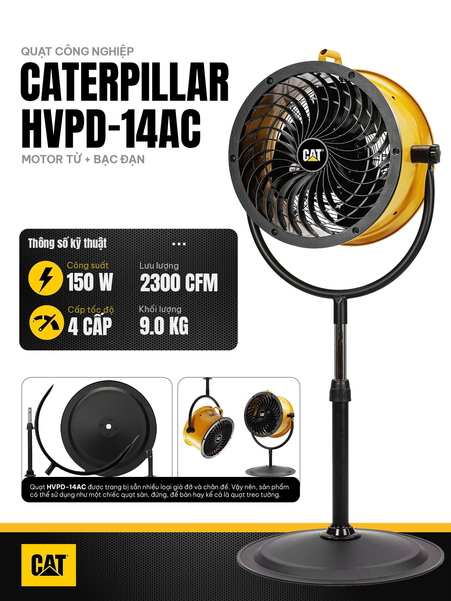 ✨Quạt công đứng nghiệp Caterpillar HVPD-14AC 14inch bền bỉ , an toàn - HÀNG CHÍNH HÃNG