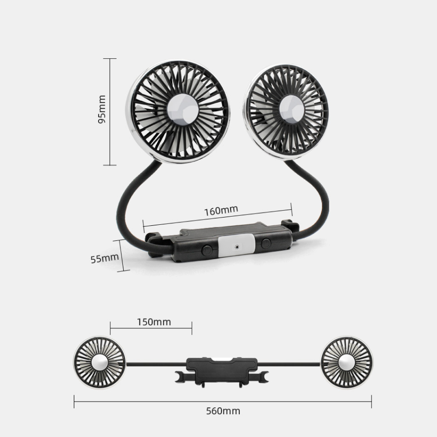- Quạt làm mát ô tô điện này cung cấp gió mạnh để hạ nhiệt hành khách phía sau với 2 đầu quạt xoay, hoàn hảo để giữ cho hành khách phía sau mát mẻ và thoải mái;