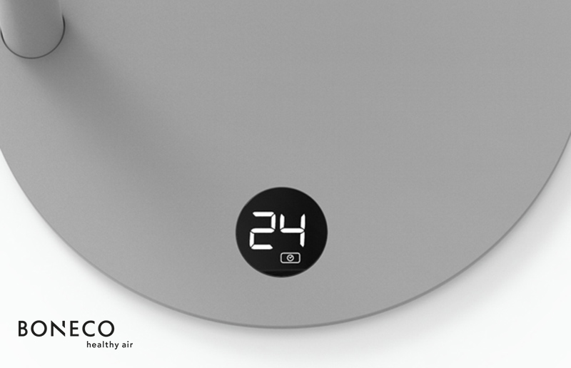 Phần đế quạt được trang bị màn hình hỗ trợ người dùng theo dõi được cấp độ quạt đang hoạt động. Ngoài ra, chức năng hẹn giờ lên đến 8 tiếng trên Quạt BONECO F235 cũng giúp người dùng cài đặt được thời gian quạt hoạt động một cách dễ dàng.