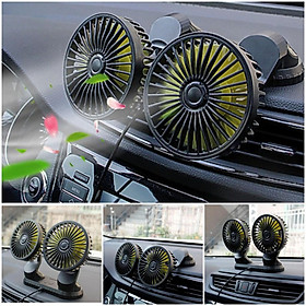 Quạt đôi, mini 5V, 12V, 24V cao cấp để trên ô tô tiện lợi cực mát 3 chế độ đầu tẩu, usb xoay 360