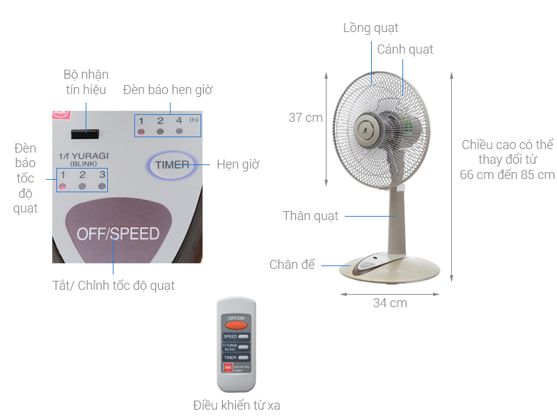 Model - L1638 • Dòng sản phẩm: Quạt Lỡ • Tốc độ gió: 3 tốc độ • Cánh quạt: 3 lá • Chuyển hướng cơ. • Chiều cao sản phẩm: 77 cm - 95 cm AN TOÀN SỬ DỤNG SẢN PHẨM
