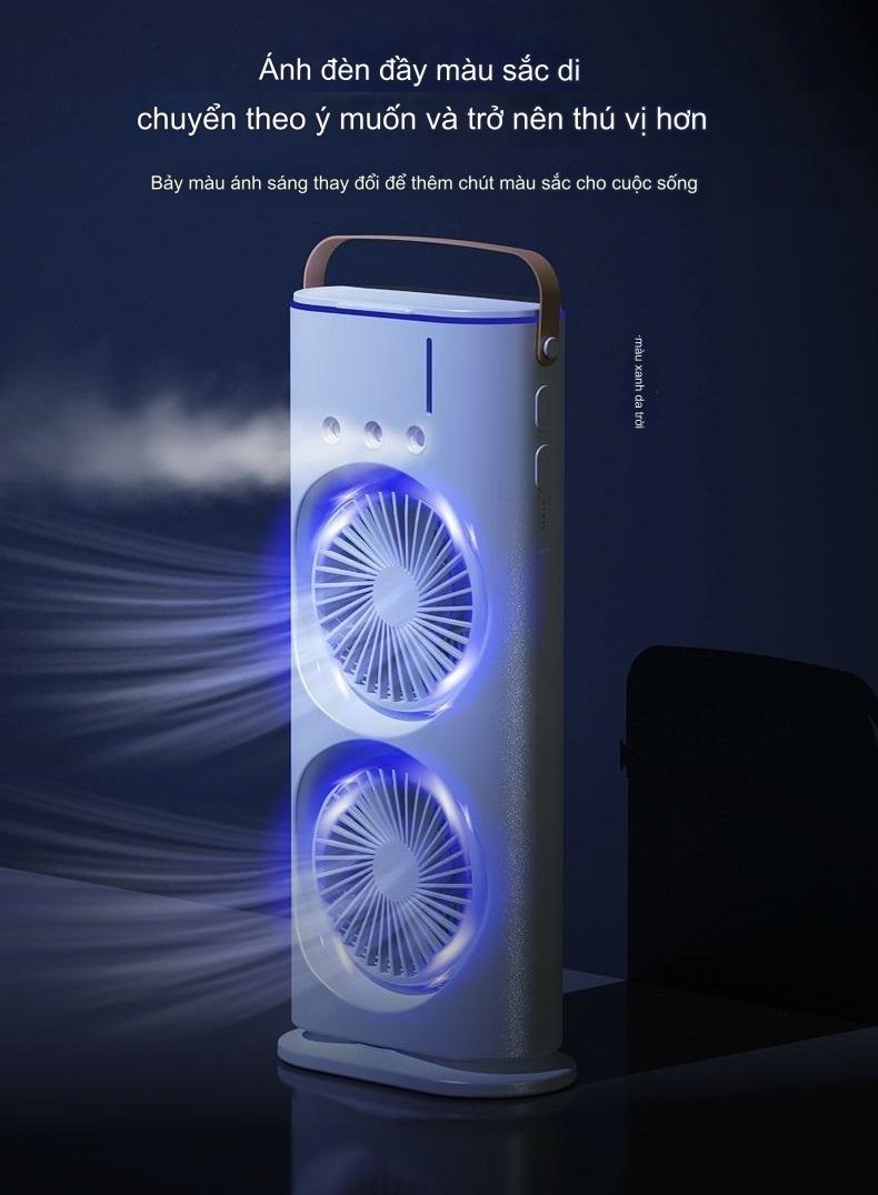 Quạt điều hoà hơi nước mini cool fan, quạt hơi nước làm mát phun sương để bàn 3 chế độ gió, dung tích bình lớn tích hợp đèn led, quạt phun sương mini để bàn