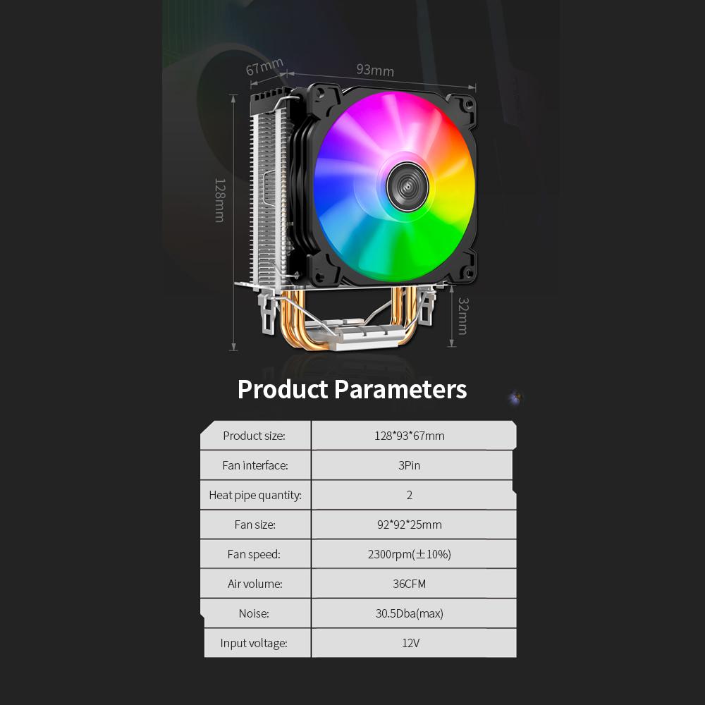 Features: Two pure copper vacuum heat pipes are closely connected with the fins and directly touch the CPU, the heat can be quickly transmitted to the heat pipes and fins without any barrier. The fin