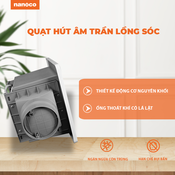 Quạt hút âm trần lồng sóc Nanoco - độ ồn siêu nhỏ chỉ 35dBA