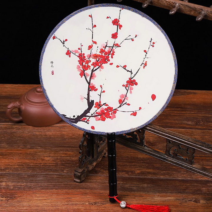 ✨Quạt tròn cổ trang hoa mai đỏ loại nhỏ đường kính 21cm