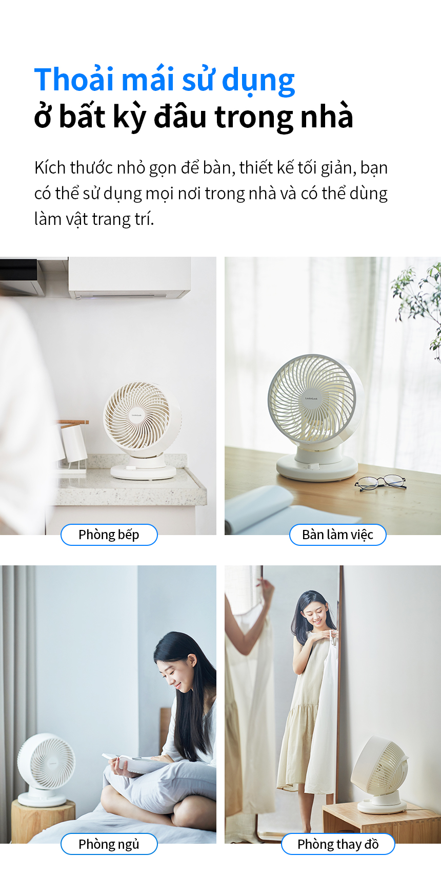 Quạt tuần hoàn không khí LocknLock Bianco ENF156IVY, Hàng chính hãng, để bàn, luồng gió đa chiều - JoyMall