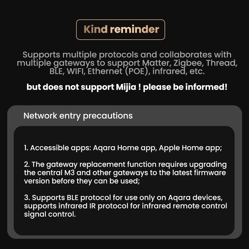 Chức năng nâng cao cho thiết bị Aqara : M3 đóng vai trò là cầu nối Matter cho các thiết bị Aqara Zigbee tần số thấp** và cung cấp các chức năng bổ sung cho thiết bị Aqara Thread, chẳng hạn như độ nhạy có thể điều chỉnh và cảnh báo giả mạo cho .