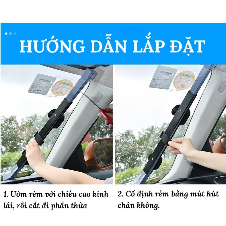 Rèm che nắng kính lái ô tô thiết kế dạng rèm kéo, cấu tạo gồm các lá nhôm phủ vào vải polyester cao cấp và dày. Rèm che nắng kính lái dùng được cả ở kính lái và kính hậu với hiệu quả chống nắng thì tuyệt vời, nhiệt độ giảm hơn 2/3 so với không dùng. Với cốc hút chân không cải tiến giúp hút chặt vào kính lái, một đầu cố định, một đầu di chuyển khiến việc đóng mở chỉ mất 2-3s, cực kỳ tiện lợi.
