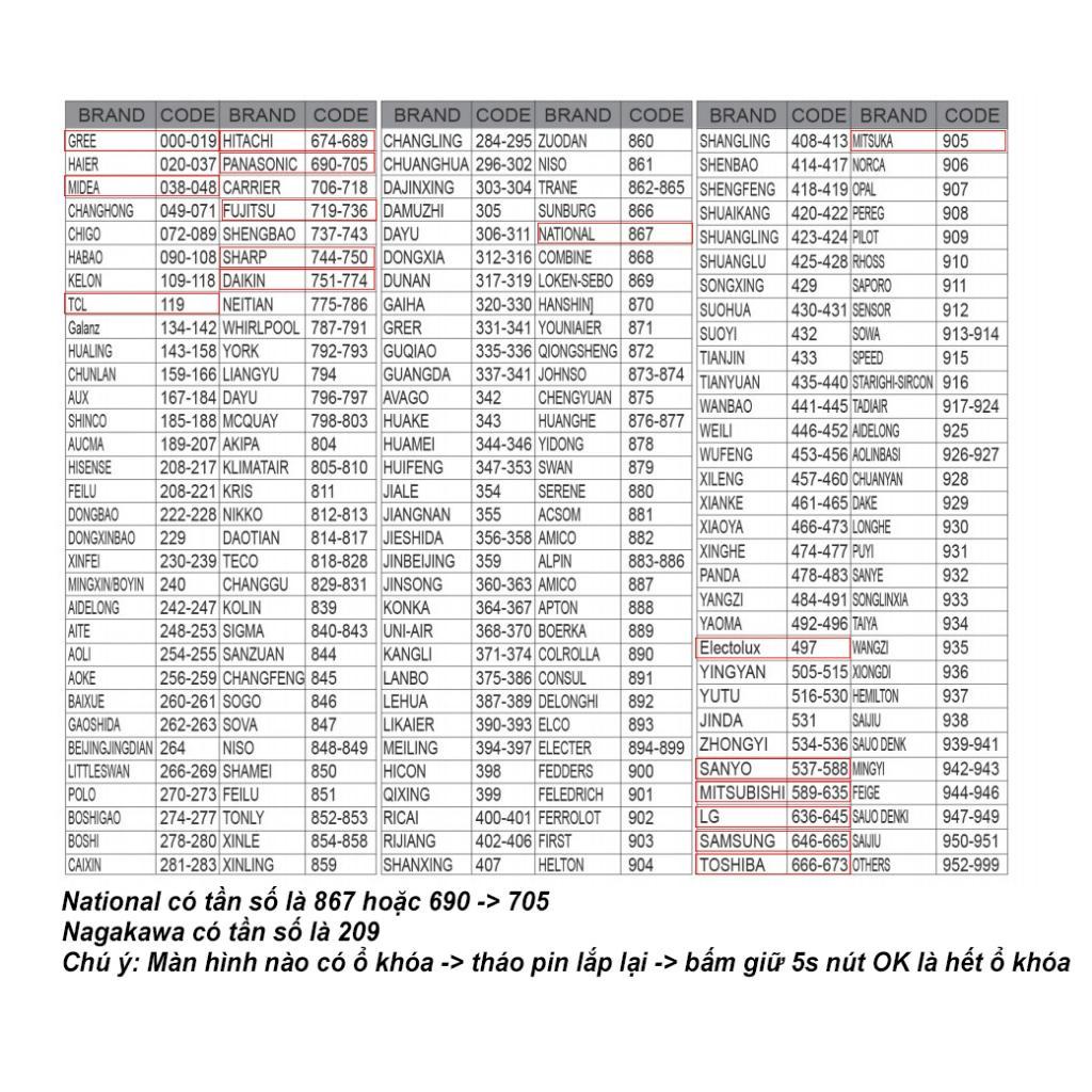 Hướng điều khiển về phía điều hòa.Bấm và giữ nút "Set"(Khoảng 6 giây) điều khiển sẽ tự động chạy dò mã bắt đầu từ 000 đến 999.