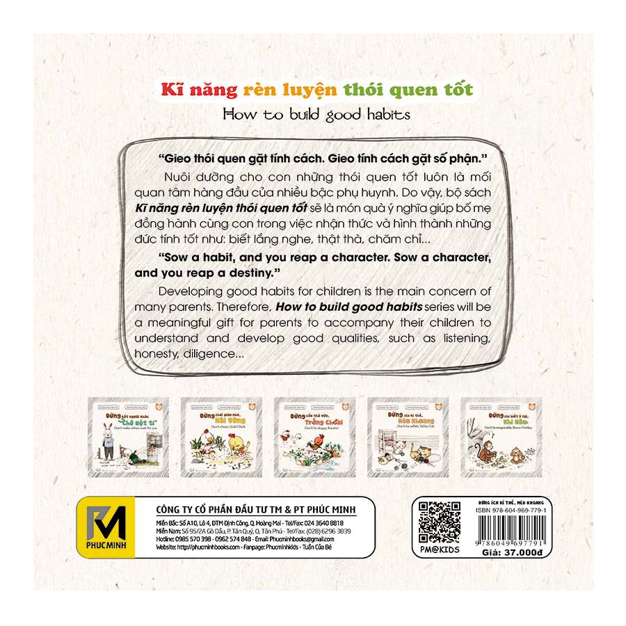 Nuôi dưỡng cho con những thói quen tốt luôn là mối quan tâm hàng đầu của cha mẹ. Do vậy, bộ sách Kĩ năng song ngữ Rèn luyện thói quen tốt sẽ là món quà ý nghĩa giúp bố mẹ đồng hành cùng con trong việc nhận thức và hình thành những đức tính tốt.