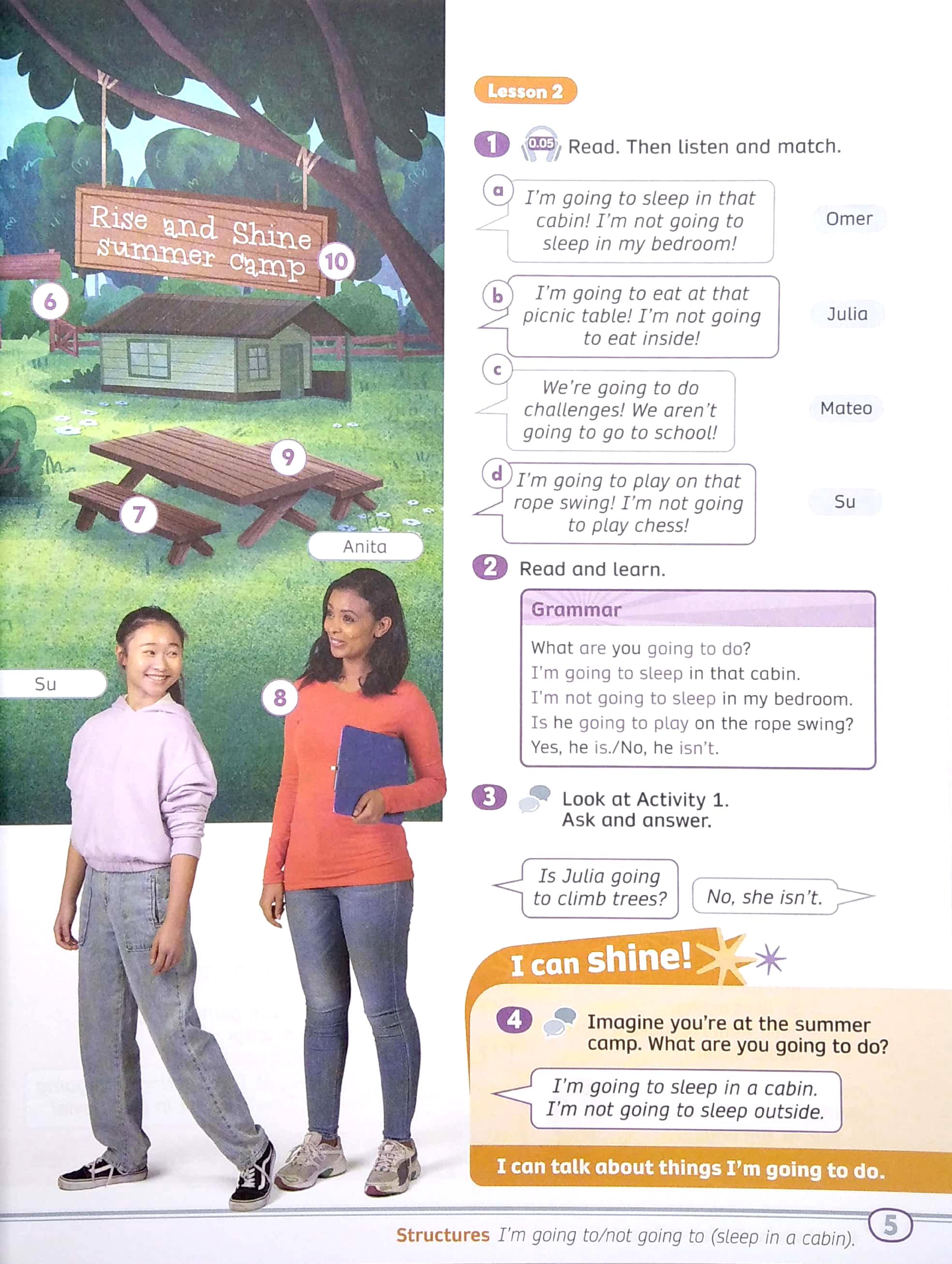 • Clear progress and accessible learning outcomes With the Global Scale of English learning objectives embedded, each unit follows five stages, signposted by colored stepping stones, so students are always aware of their learning goals for the unit and can chart their progress at the end of each stage of the unit through a clear ‘I can shine’ activity.