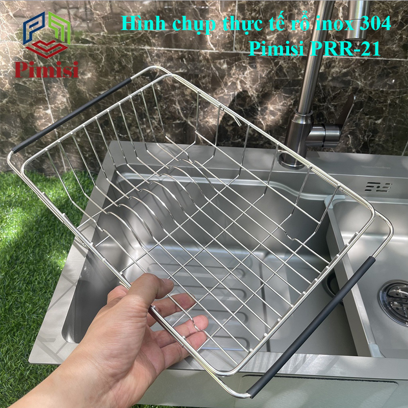 - Tên sản phẩm: Rổ Inox 304 chữ nhật gác bồn rửa chén Pimisi PRR-21.