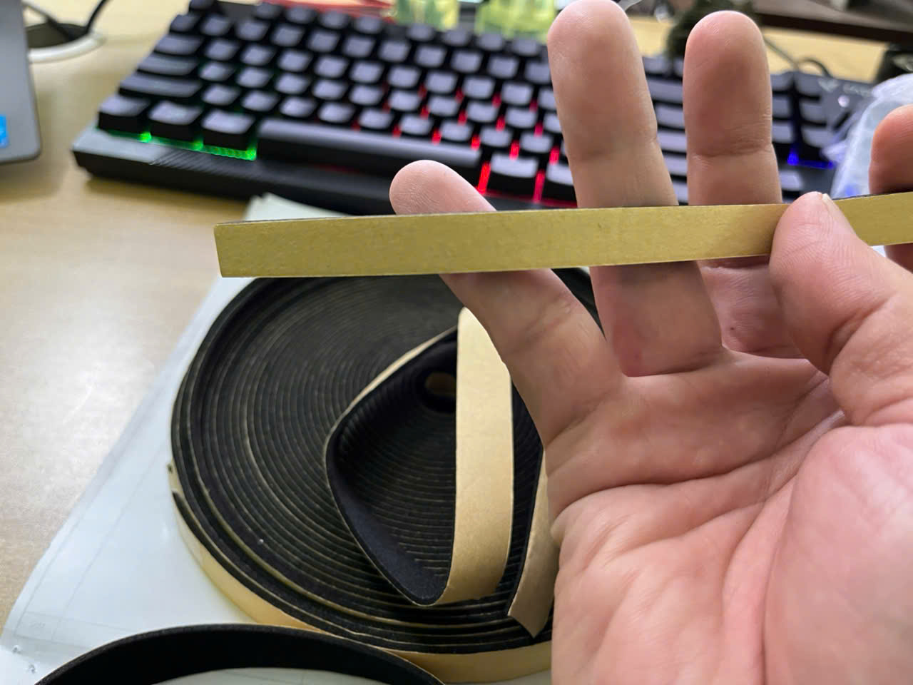 Phương pháp này là lâu đời nhất. Được cung cấp ở dạng cuộn, các nhà sản xuất vỏ bọc sẽ dán các dải vật liệu đệm vào bề mặt vỏ bọc cần được bịt kín. Một mặt của vật liệu đệm sẽ có lớp keo dính nhạy áp được thiết kế để bám chặt vào cấu trúc vỏ. Các góc không được bịt kín do thiết kế dạng dải. Phương pháp này là kinh tế nhất nhưng các góc là khu vực cần quan tâm đối với một số ứng dụng.