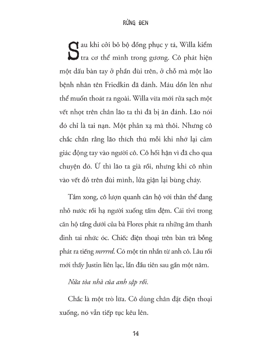 Rừng Đen - Richard Mirabella Sau nhiều năm cắt đứt liên lạc, Justin xuất hiện trước cửa nhà Willa, em gái mình và nói cần một nơi để ở. Willa, một cô gái ngăn nắp,