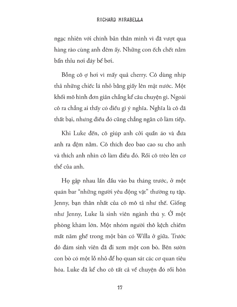 Richard Mirabella là một nhà văn kiêm công chức sống ở ngoại ô New York. Truyện ngắn của ông đã xuất hiện trên Story Magazine, American Short Fiction trực tuyến, One Story, Split Lip Magazine, và nhiều nơi khác.