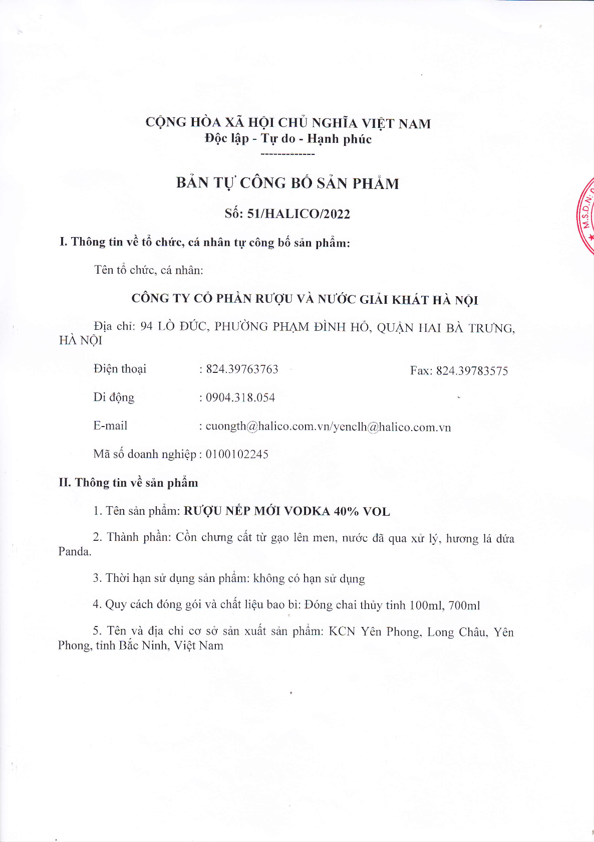 Mua tại TiktokRượu Nếp Mới được nấu từ loại ngũ cốc giàu tinh bột. Rượu ngon, tinh khiết, uống vào thấy vị cay thấm dần trong lưỡi. Rượu ngon nhờ men tốt, thứ men đặc biệt lưu truyền qua nhiều đời được Công ty Cổ phần Rượu và nước giải khát Hà Nội chắt lọc, tìm tòi, nghiên cứu, nuôi cấy thành loại men hiện nay làm đắm say lòng người. Rượu Nếp Mới khác biệt với các loại vodka khác nhờ có hương thơm đặc biệt. THÔNG TIN SẢN PHẨM: