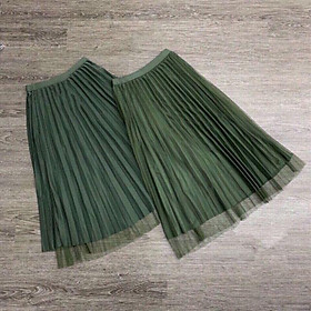 ₫159.000: Chân váy midi lưới Mia, chân váy xếp ly dài midi 2 lớp phối dây xích vintage