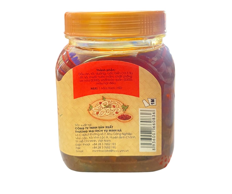 - Thành phần : Dầu ăn, tỏi, đường, ruốc biển 12.3%, ớt, sả, muối, nước mắm,..