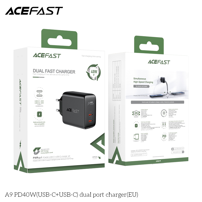 ✨Sạc Acefast PD3.0 40W 2 cổng USB-C (EU) - A9 Hàng chính hãng Acefast