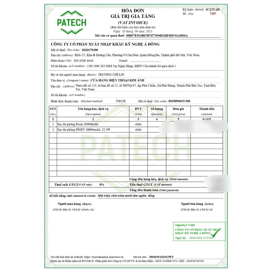 Tem/thông tin xuất xứ của NHÀ PHÂN PHỐI CHÍNH THỨC DUY NHẤT – PATECH JSC,.