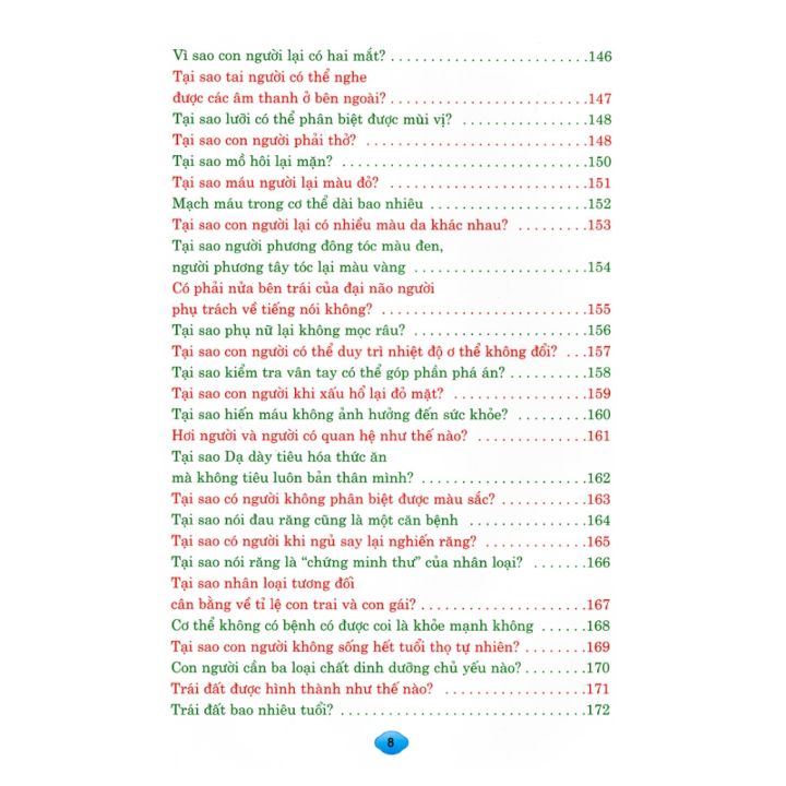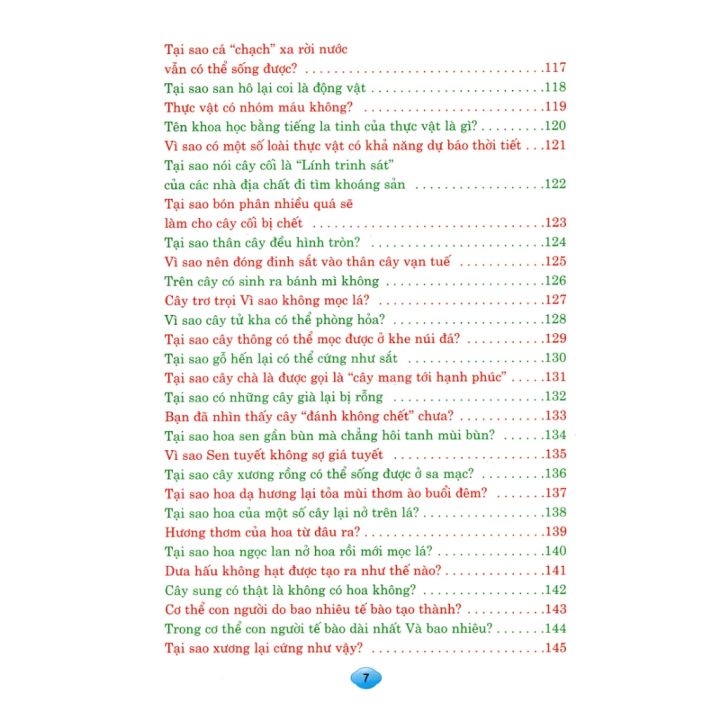 Các câu hỏi sẽ giúp các bạn tìm hiểu được vô số điều bổ ích từ thế giới muôn màu: Tại sao bóng đèn điện lại có thể phát sáng? Voi có phải là động vật lớn nhất không? Trai di chuyển như thế nào? Lợn có ngu không? Vì sao cá chuồn biết bay?