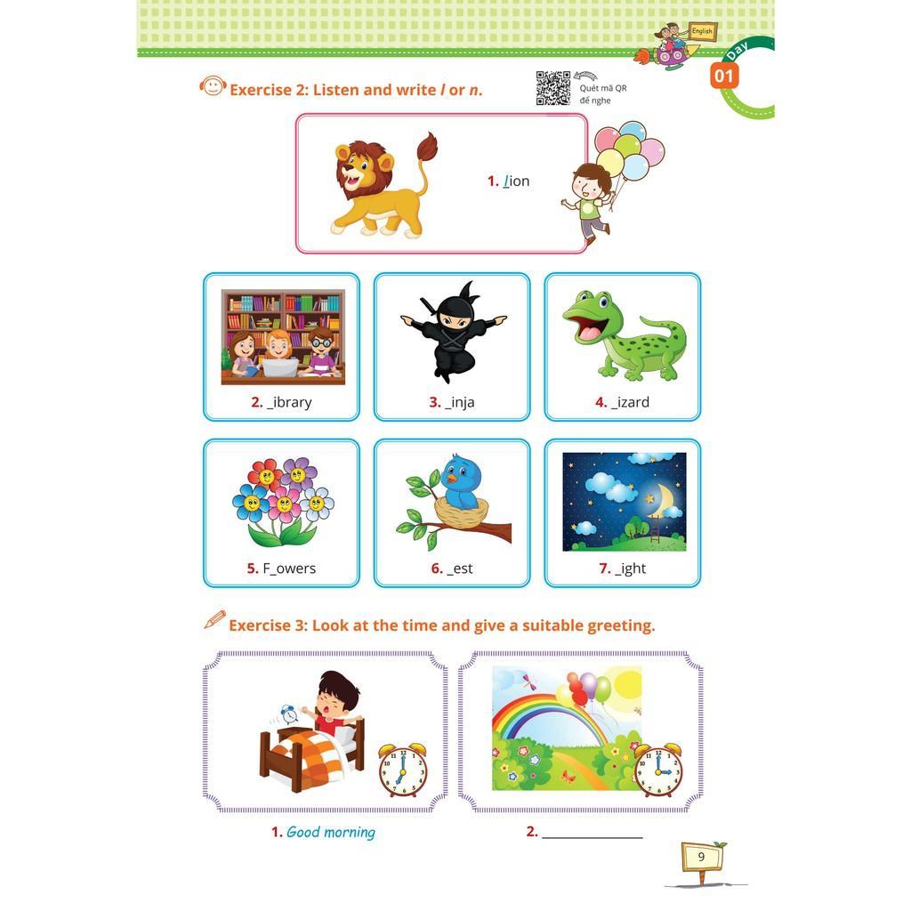 - Bám sát chương trình học trên lớp – Phù hợp với học sinh mọi năng lực Với tính chất tổng ôn toàn diện, ôn tập nhanh nên “20 ngày ôn tập toàn diện kiến thức tiếng Anh” là cuốn sách phù hợp cho học sinh mọi năng lực. Đặc biệt là các bạn học lực trung bình, thiếu tài liệu ôn tập hay cần ôn tập nhanh trước các kỳ thi tiếng Anh. Quét mã truy cập file nghe dễ dàng Các bài tập nghe được tích hợp mã , chỉ cần sử dụng điện thoại hoặc máy tính bảng để quét mã và nghe. Các em sẽ được nghe và làm quen với tiếng Anh chuẩn ngay từ những bài thực hành nhỏ như thế. Với ưu điểm ngắn gọn – trọng tâm, “20 ngày ôn tập toàn diện kiến thức tiếng Anh” chắc chắn là trợ thủ đắc lực giúp các em học tốt môn tiếng Anh trên lớp, ôn tập nhanh và đạt điểm cao trong các bài thi tiếng Anh!