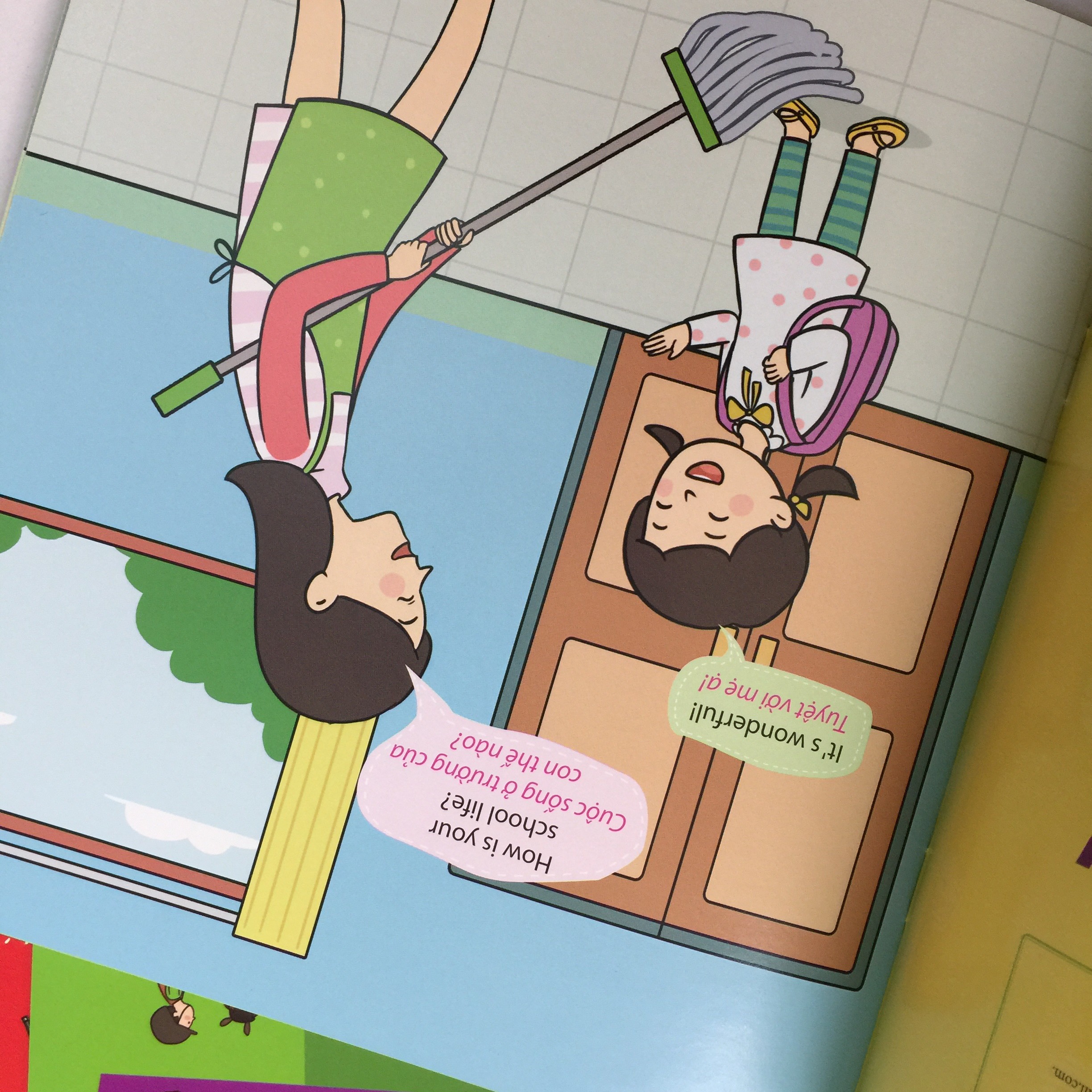 Qua từng cuốn sách con có thể giao tiếp cơ bản về những hoạt động trong ngày của con bằng tiếng anh với bố mẹ.
